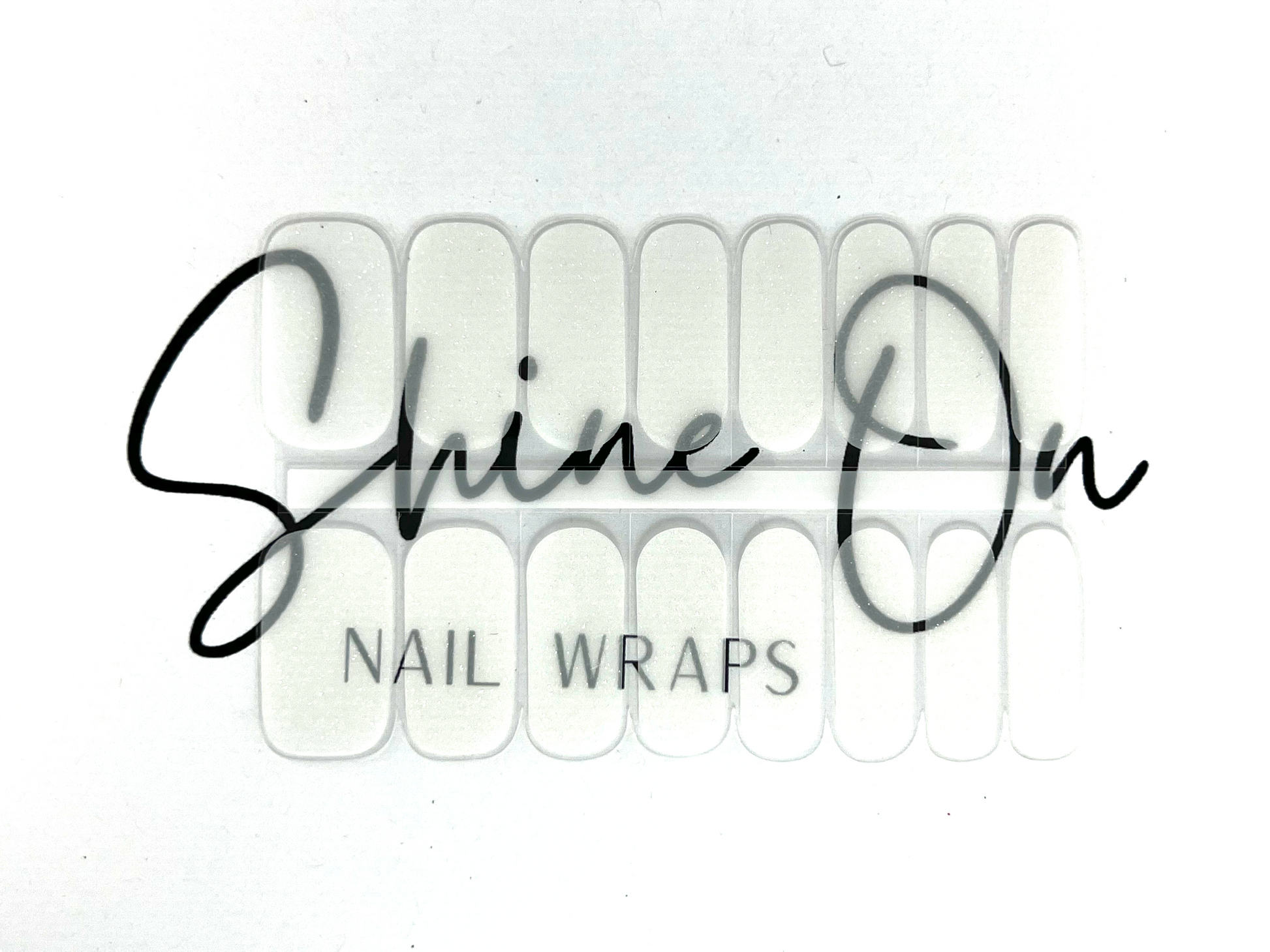 16 SEMI-CURED UV GEL WRAPS IN A SHEER WHITE WITH AN ULTRA FINE WHITE GLITTER