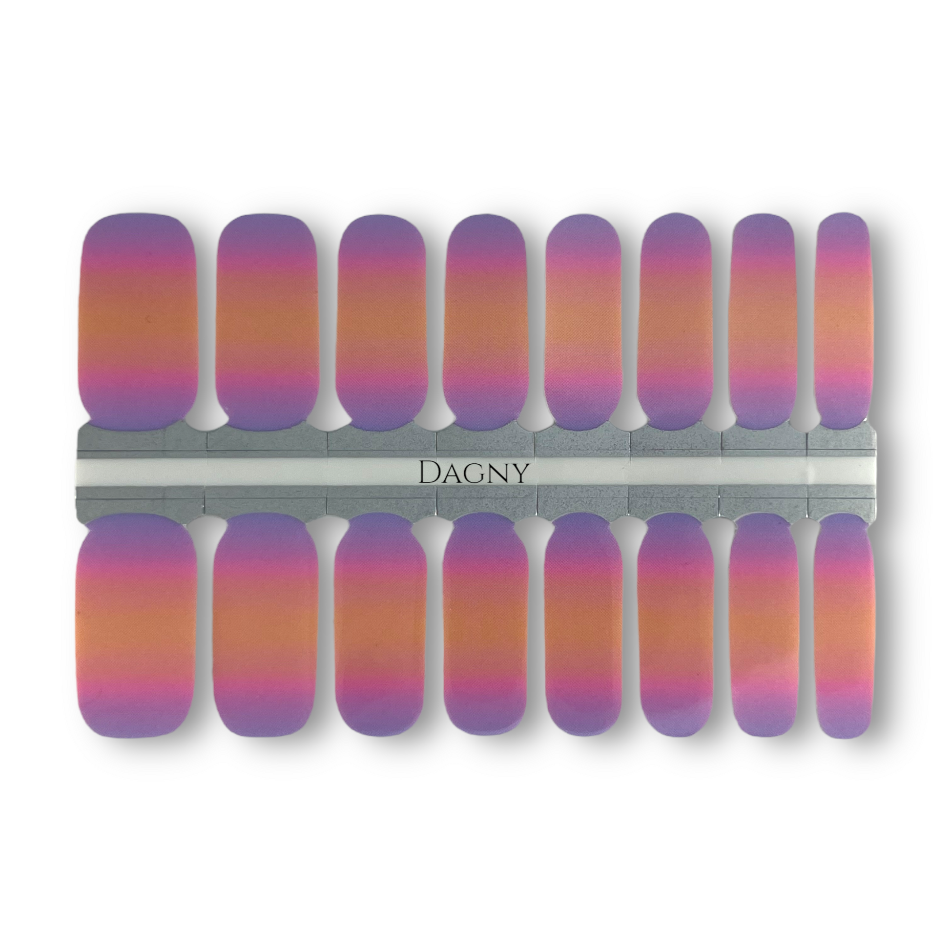 16 REAL NAIL POLISH STRIPS IN A SOFT PURPLE TO PINK TO PEACH OMBRÉ IN A CREAM FINISH