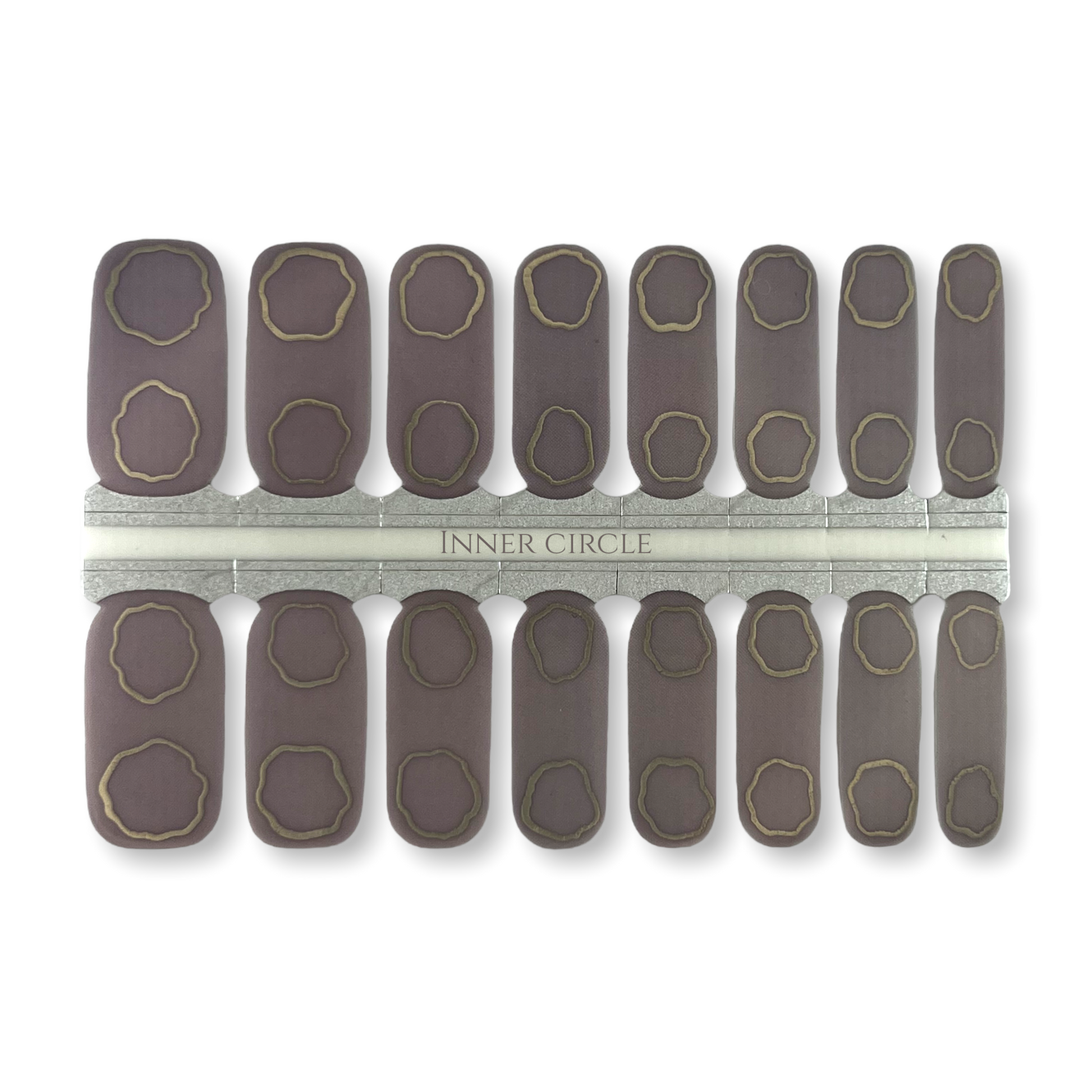 16 REAL NAIL POLISH STRIPS IN SHEER GREY WITH A METALLIC SILVER SHAKY CIRCLE