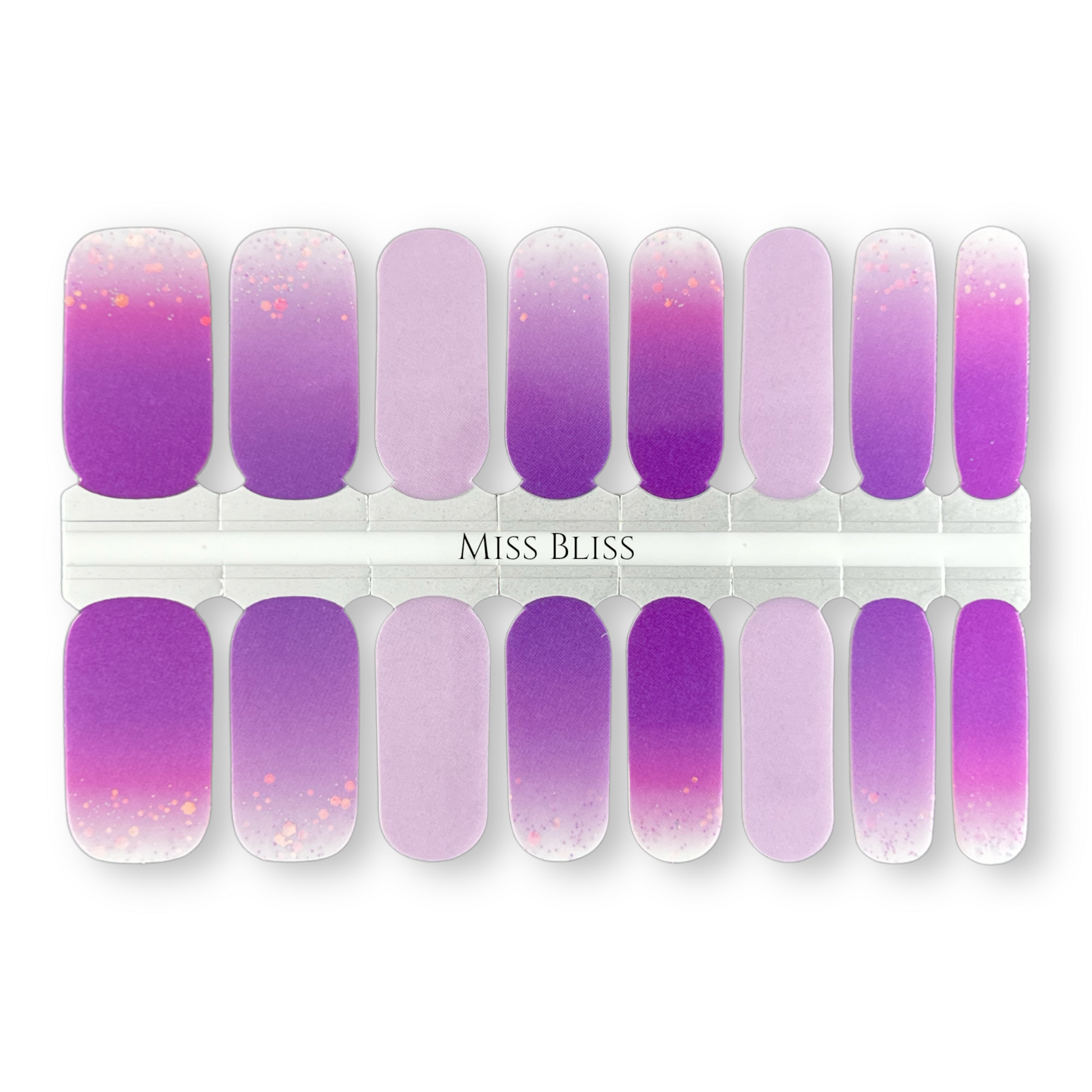 16 REAL NAIL POLISH STRIPS IN SOFT PURPLE TONES WITH HOLOGRAPHIC GLITTER