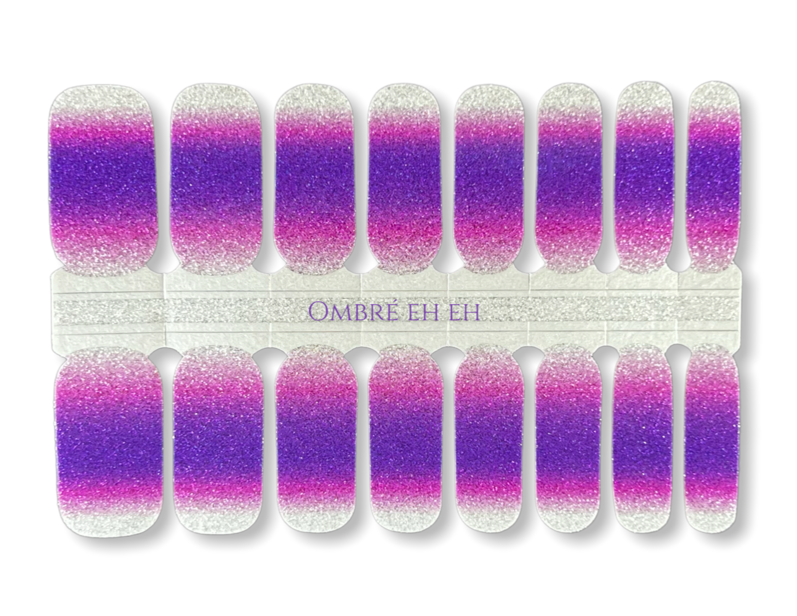16 REAL NAIL POLISH STRIPS IN A VIBRANT SILVER PINK PURPLE OMBRÉ GLITTER
