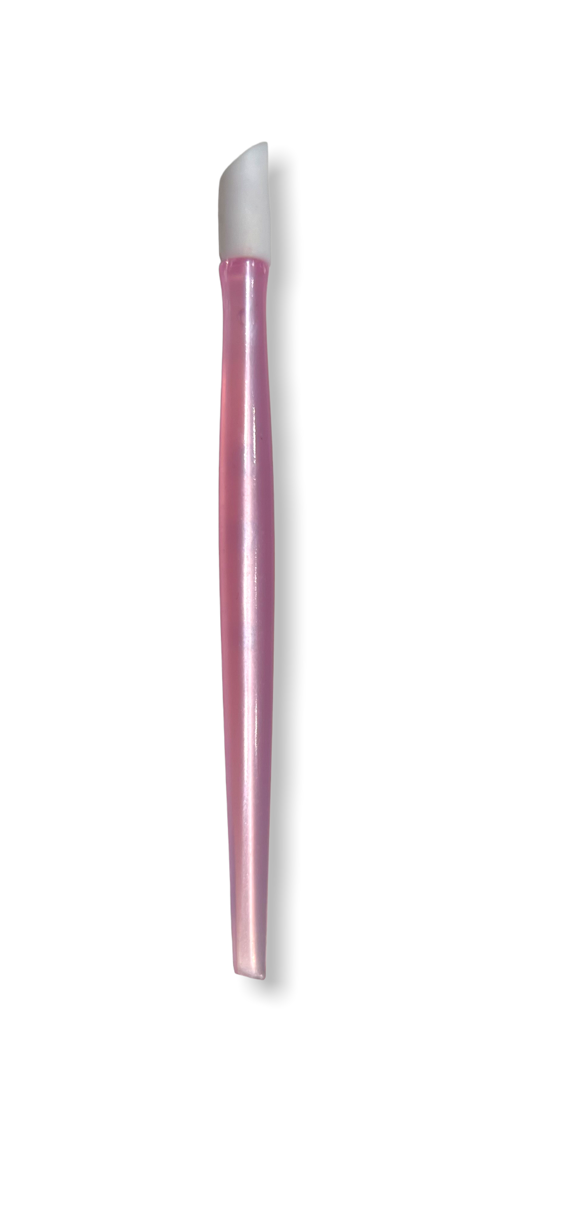 RUBBER CUTICLE PUSHER IN A PRETTY TRANSPARENT PEARL PINK.
