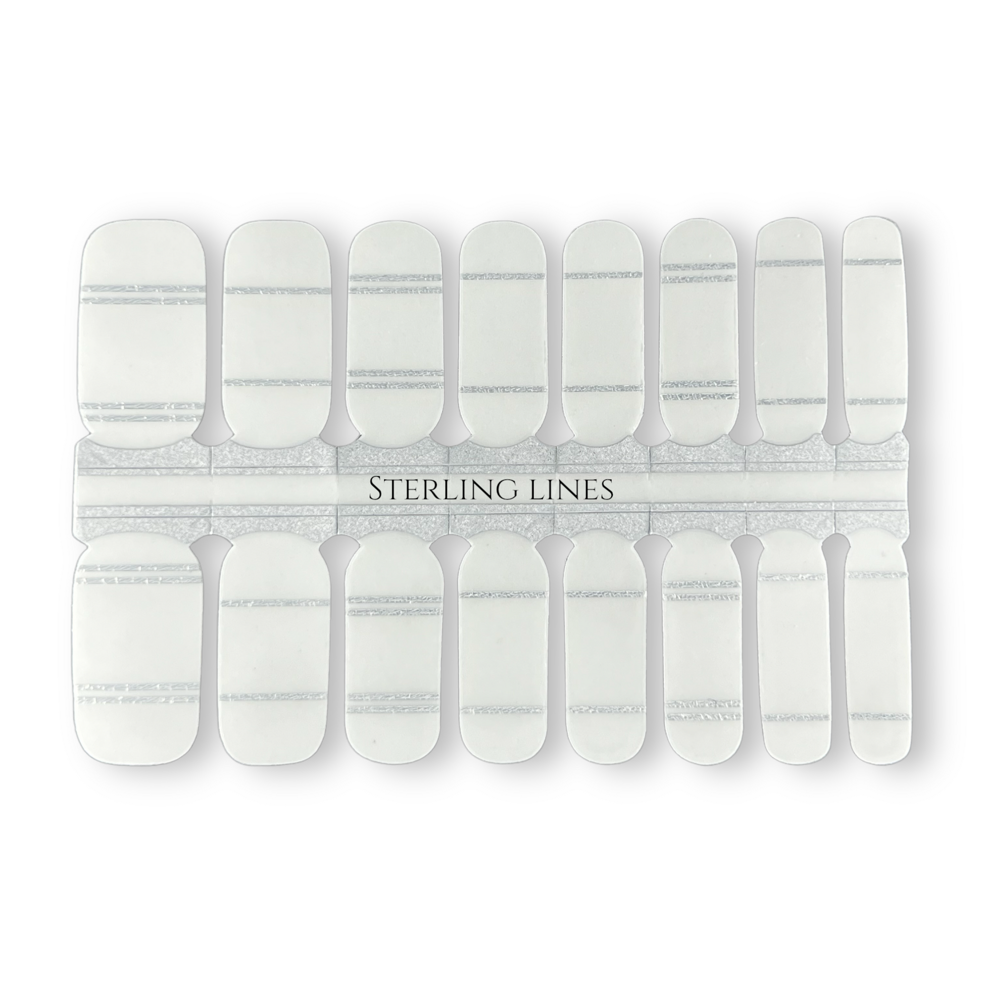 16 REAL MAIL POLISH STRIPS FEATURING SILVER FOIL LINE DESIGN ON A CLEAR BASE