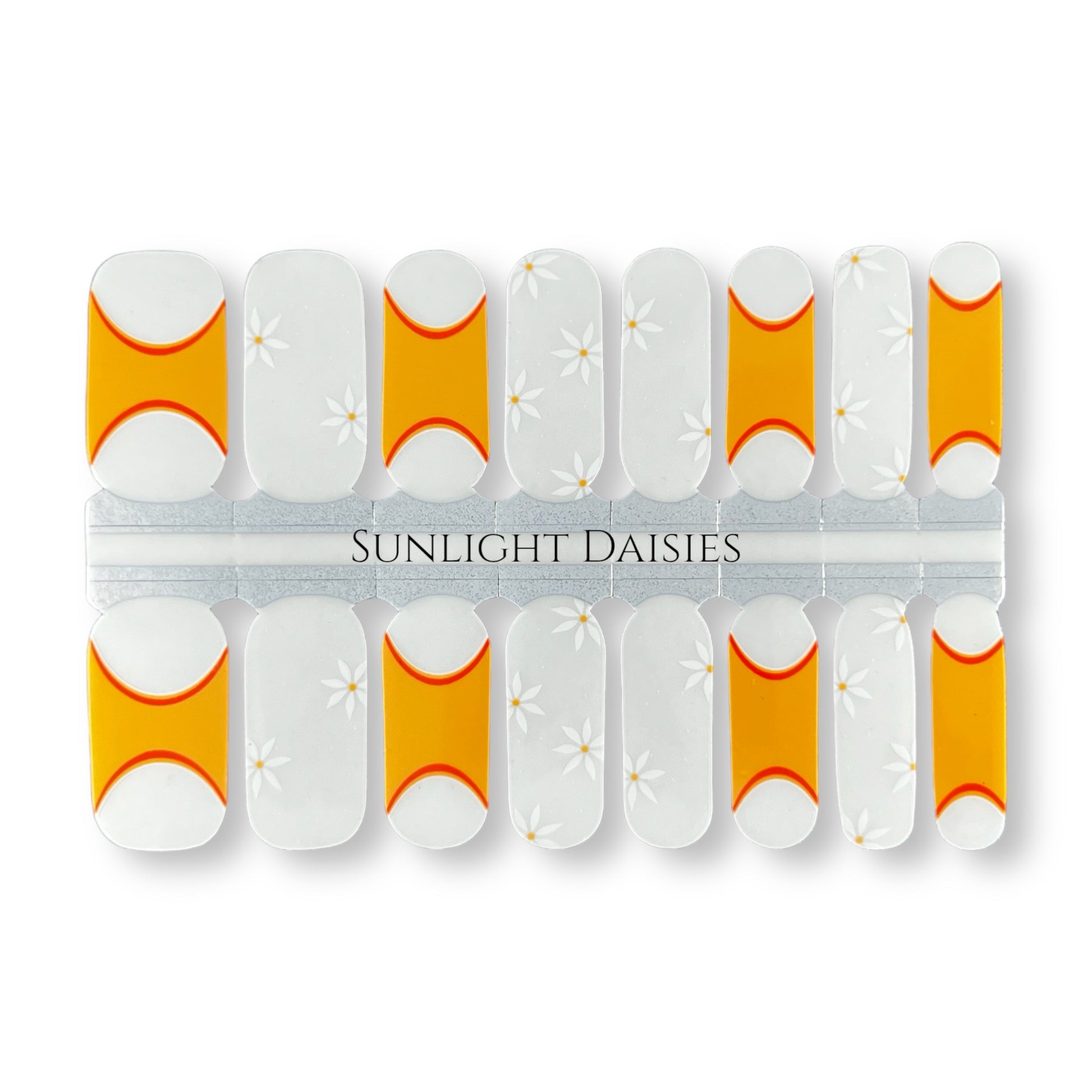 16 REAL NAIL POLISH STRIPS HAPPY YELLOW TONED FRENCH TIPS AND DAISY ACCENT STRIPS ON A CLEAR BASE