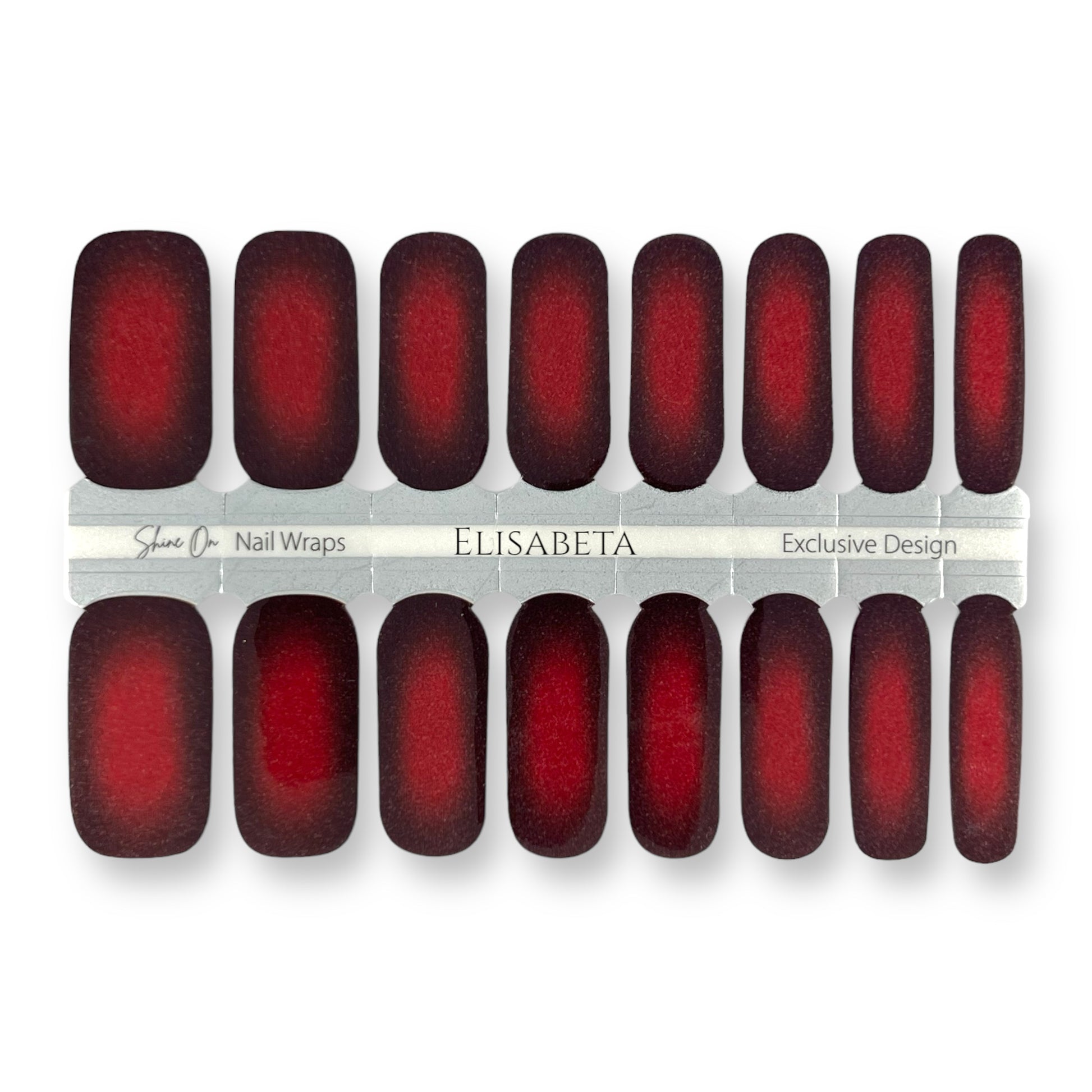 IN A DEEP RED TO BLACK/RED OVAL OMBRÉ IN A PEARL FINISH