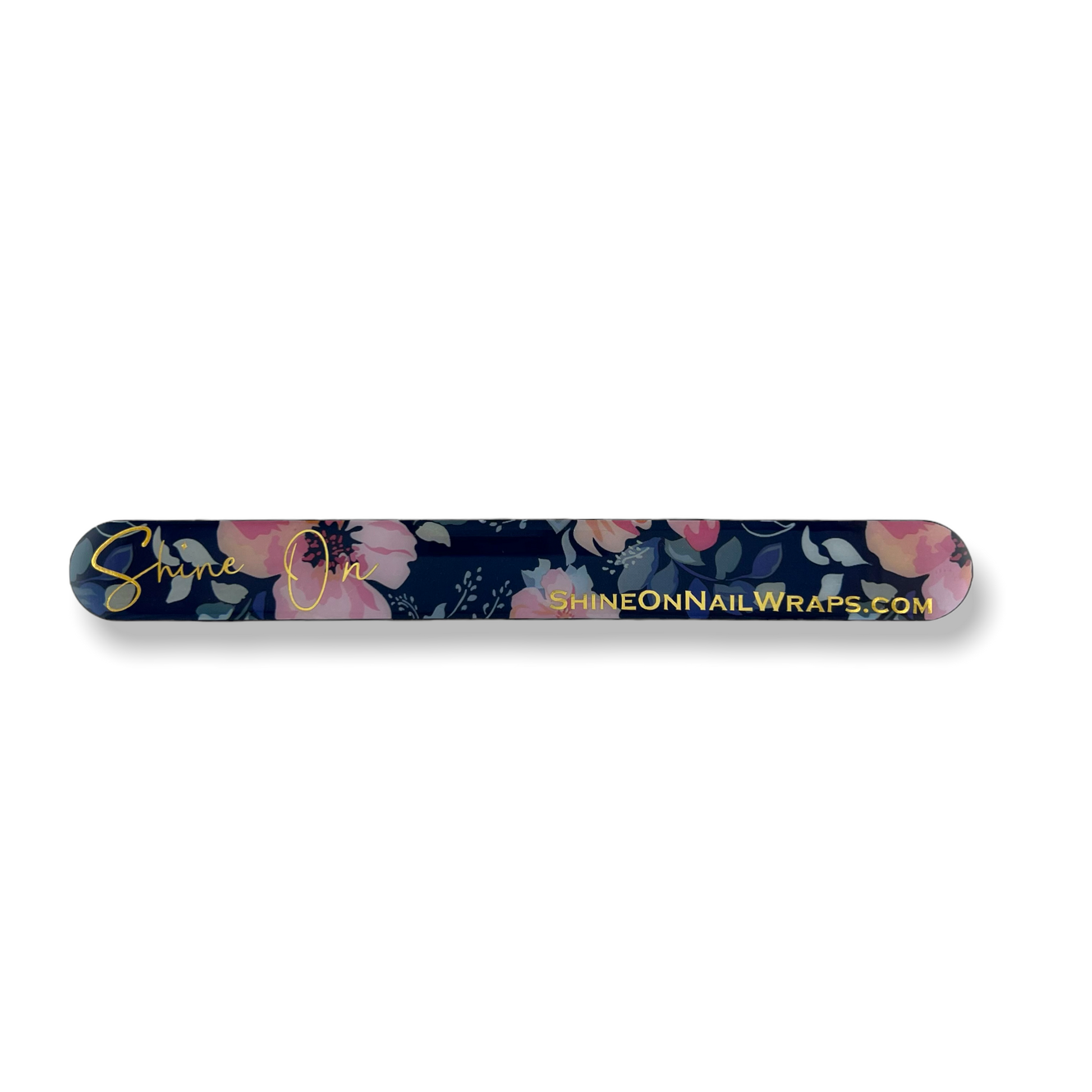 THIS IS THE BEST ALL AROUND NAIL FILE WE HAVE FOUND, IT FEATURES A LASER CUT STAINLESS STEEL FILE PAIRED WITH A DECORATIVE FLORAL BACK EMBELLISHED WITH OUR GOLD FOIL LOGO AND WEBSITE