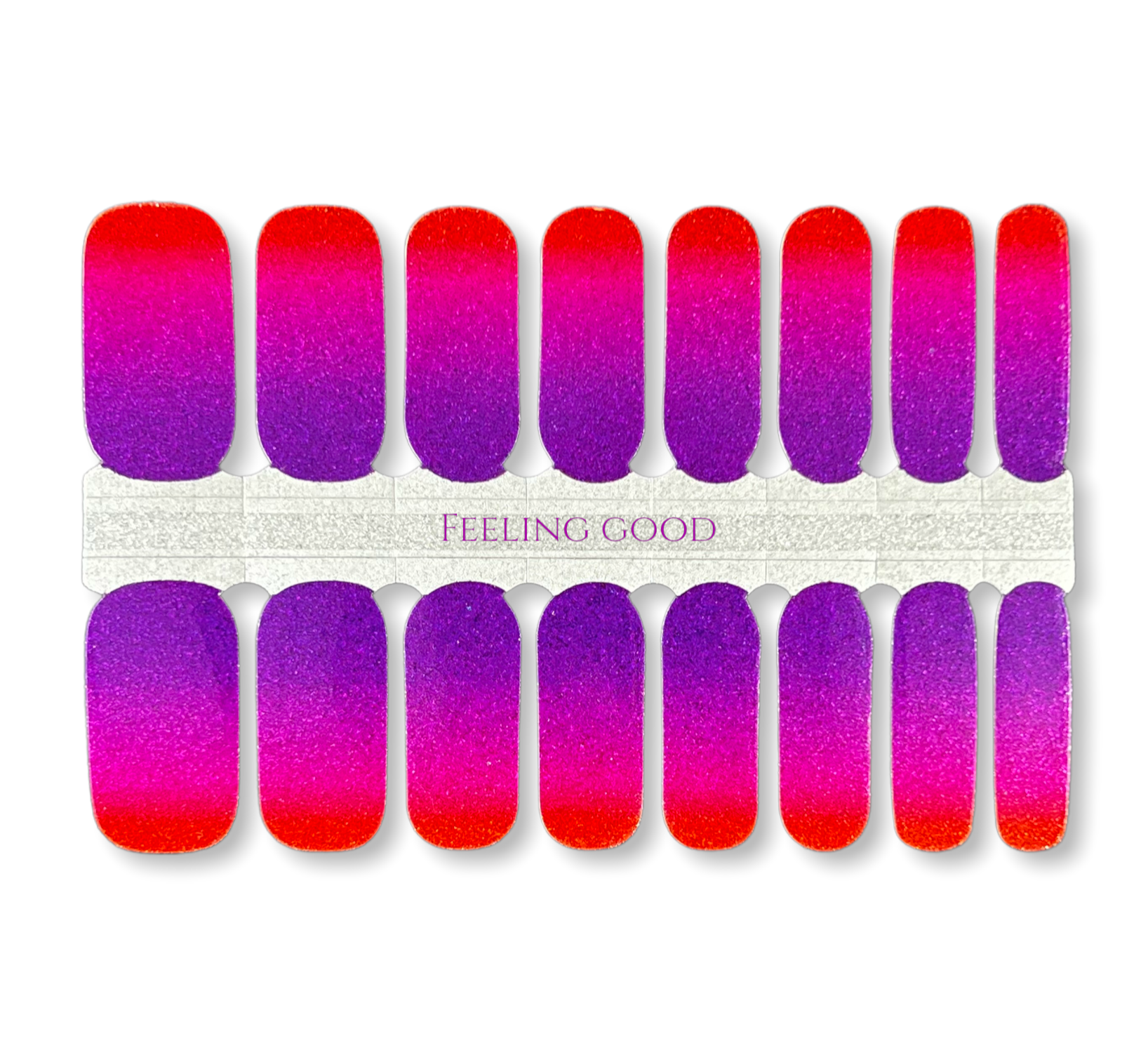 16 REAL NAIL POLISH STRIPS IN A VIBRANT RED PINK PURPLE OMBRÉ GLITTER