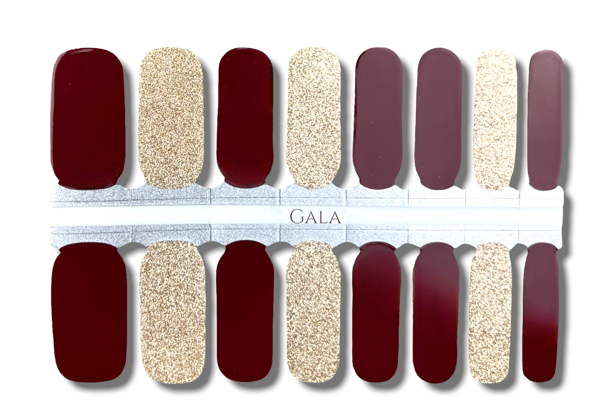 DEEP BURGUNDY AND GOLD GLITTER ACCENT NAILS