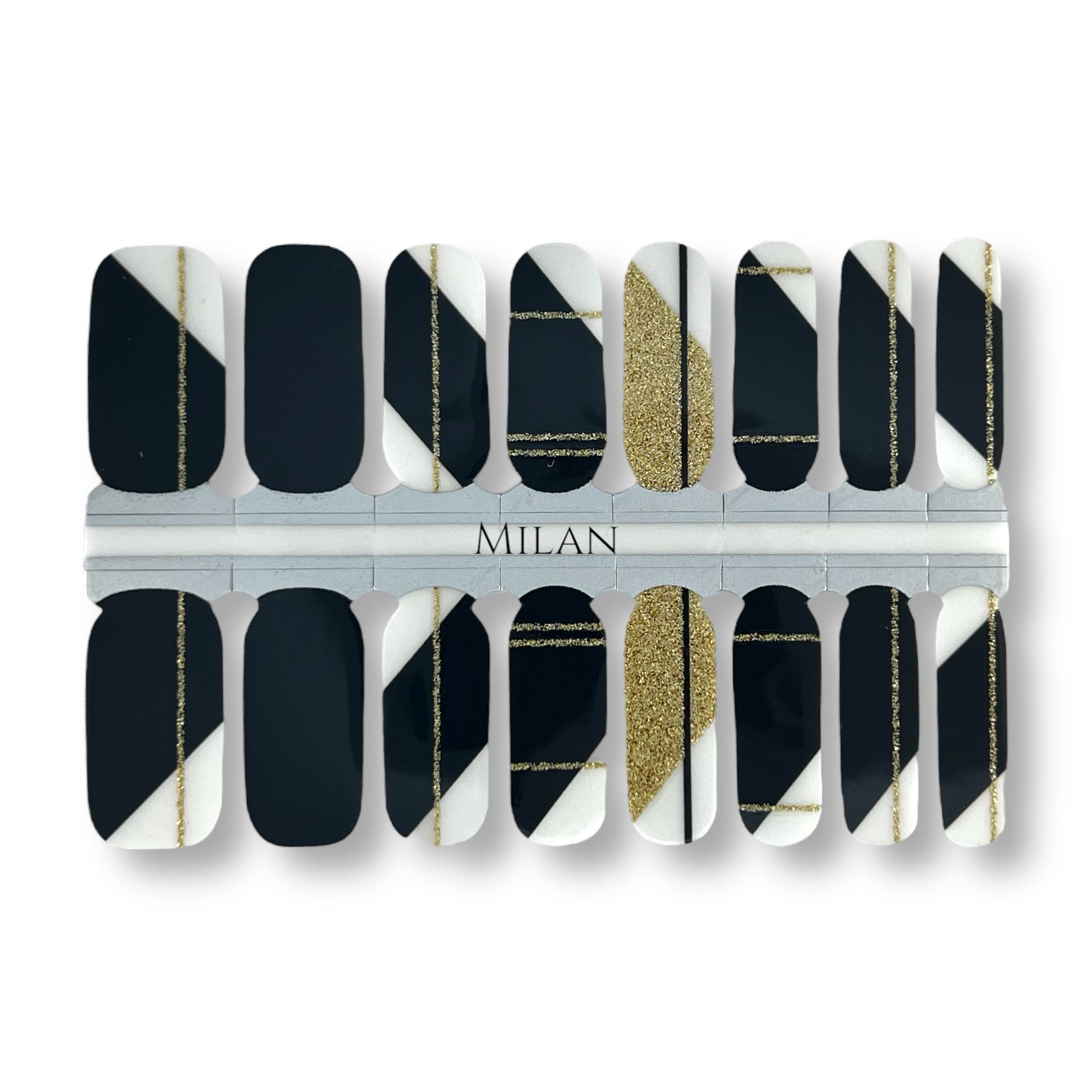16 REAL NAIL POLISH STRIPS IN A GREY AND GOLD MIXED MANI FEATURING NEGATIVE SPACE