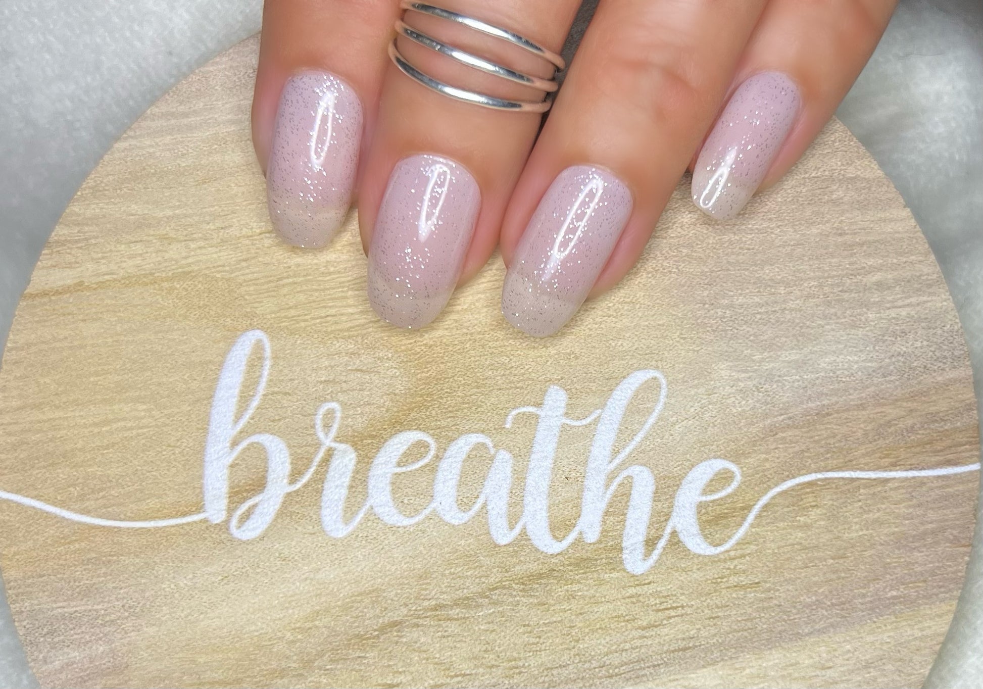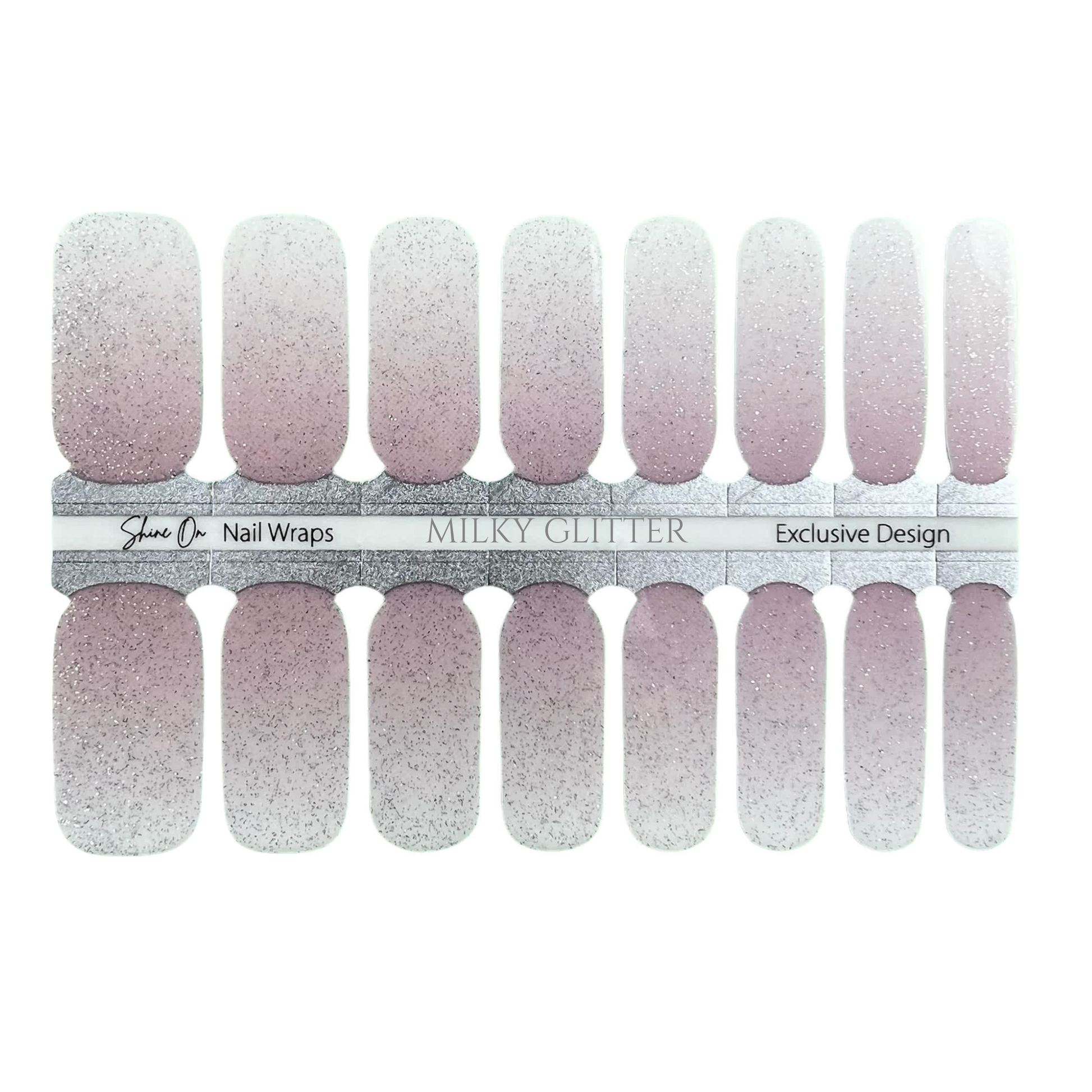 SEMI TRANSPARENT OMBRE MILKY WHITE TO MILKY PINK WITH EXTRA FINE SILVER GLITTER