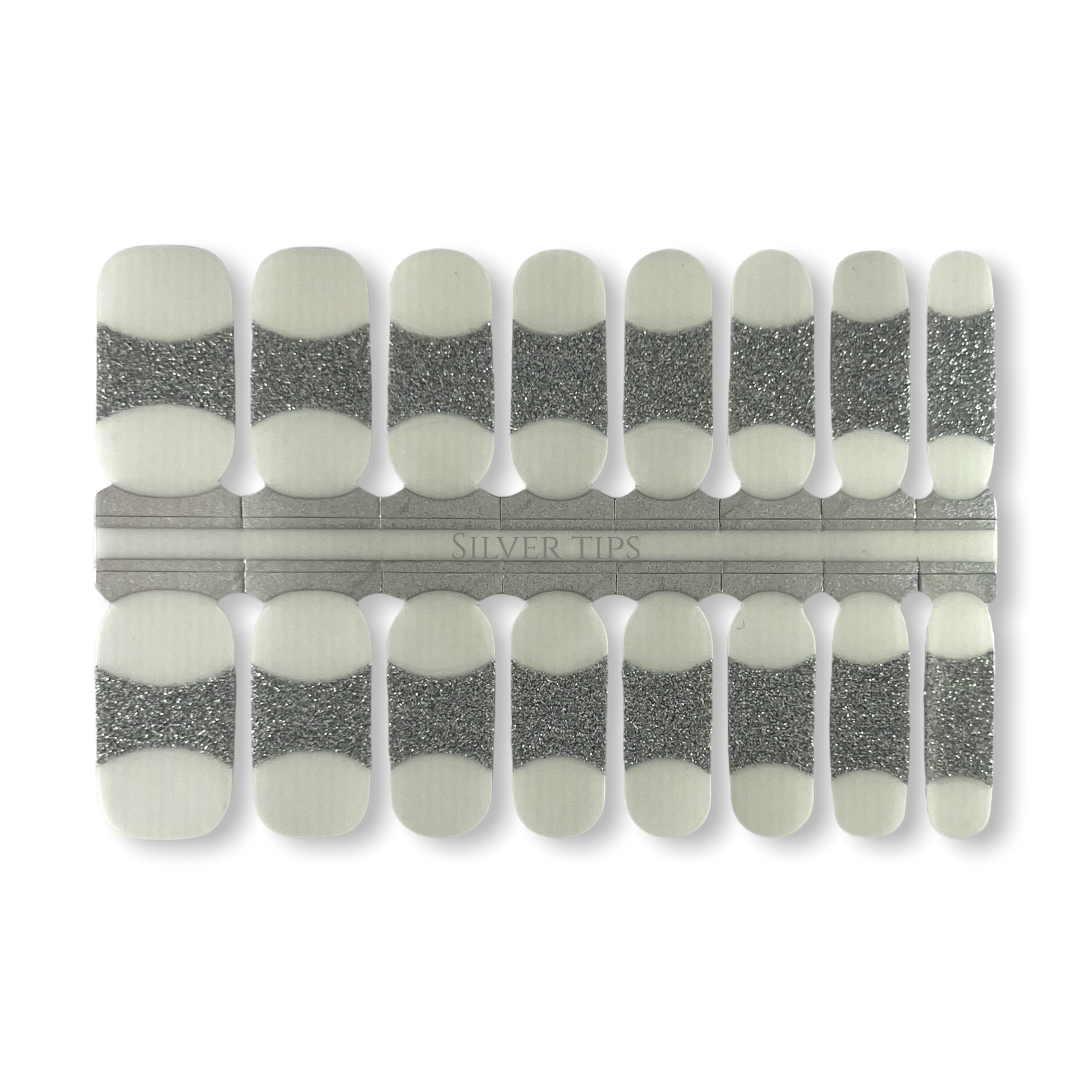 WITH MODERN SILVER GLITTER IN A CLASSIC FRENCH TIP DESIGN