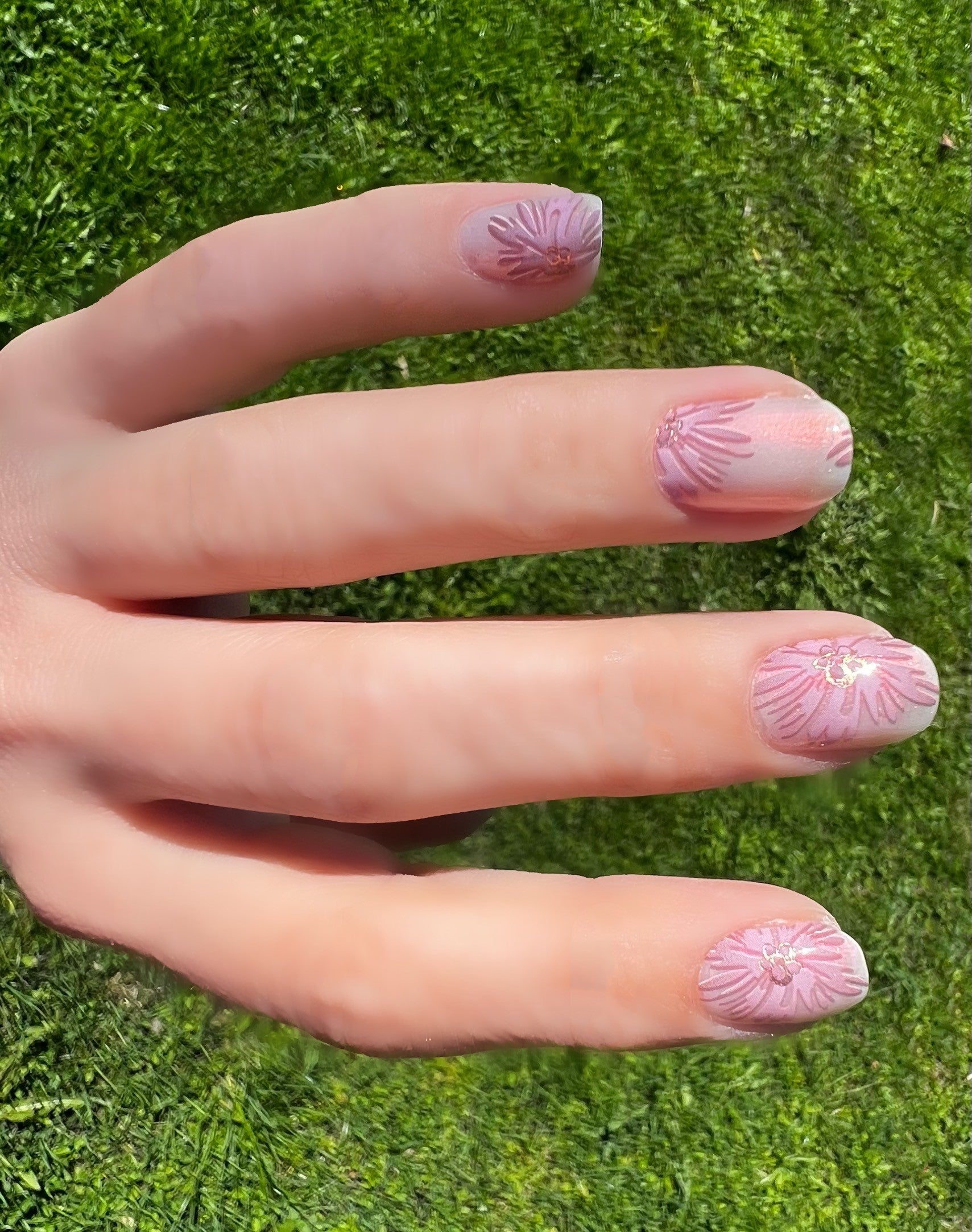 FEATURING A SOFT FLORAL DESIGN WITH ROSE GOLD FOIL ACCENTS ON A CLEAR BASE