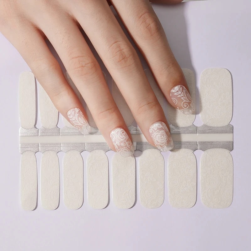 A TRANSPARENT BASE WITH A VINTAGE ROSE DESIGN IN WHITE